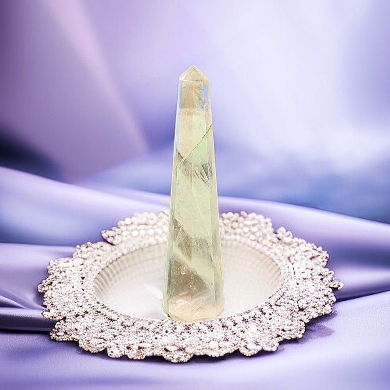 Der Bergkristall oder klare Quarz ist ein starker Heilstein und ein Energizer. Er regt das Denken und die Wahrnehmung an. Er hilft Ihnen, sich mit Ihrer inneren Weisheit zu verbinden. Reinigt und stärkt den energetischen und physischen Körper, wie das Immunsystem. Ein Obelisk ist eine kraftvolle Form, die auch als Lichtsäule bezeichnet wird. Wenn er als Dekoration in einem Wohn- oder Arbeitsbereich aufgestellt wird, wertet er das Feng Shui dieses Bereichs auf.