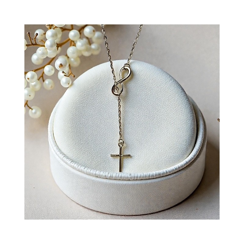 Magnifique pendentif avec sa croix en argent plaqué d’environ 2 cm, monté sur une chaîne ajustable de 40 à 45 cm. La chaîne est équipée d’un système coulissant en forme de symbole « 8 », qui symbolise l’infini et l’équilibre. Ce mécanisme assure un réglage précis et un maintien optimal du bijou, tout en facilitant la mise en place et le retrait. Un mariage parfait d’élégance, de symbolique et de confort pour un porté quotidien raffiné.